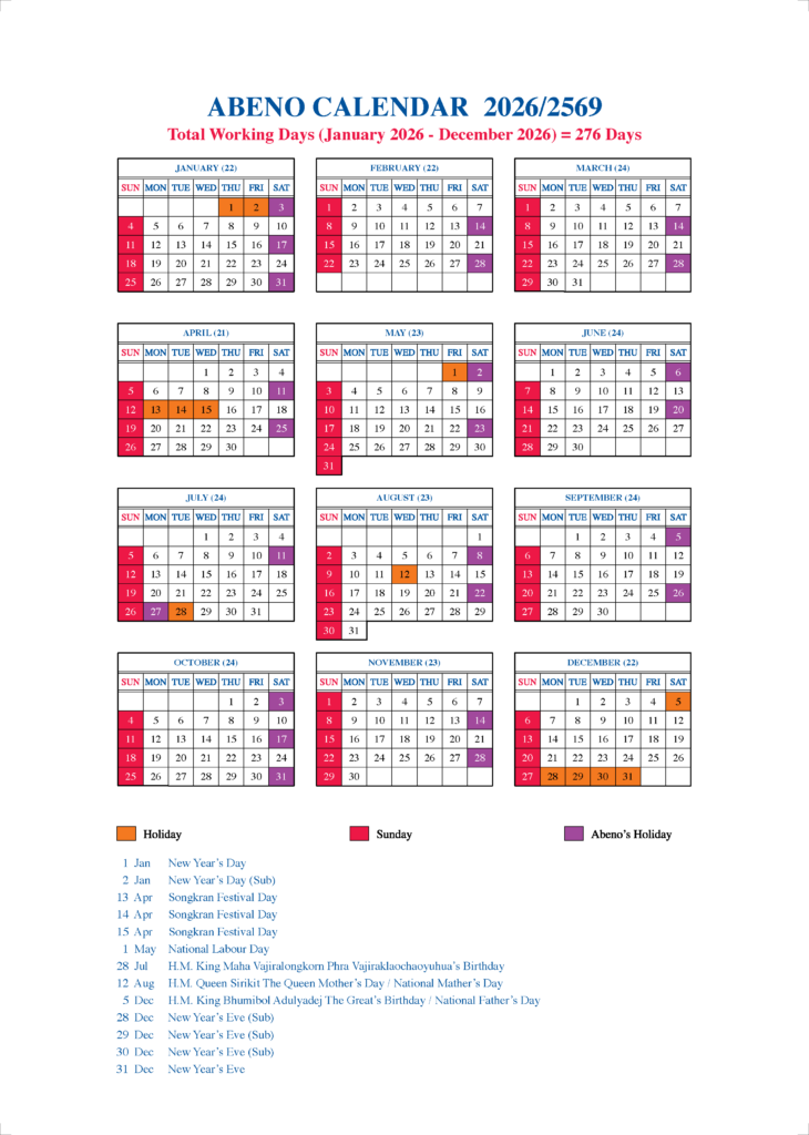 ตารางวันทำการของบริษัท ประจำปี พ.ศ.2569